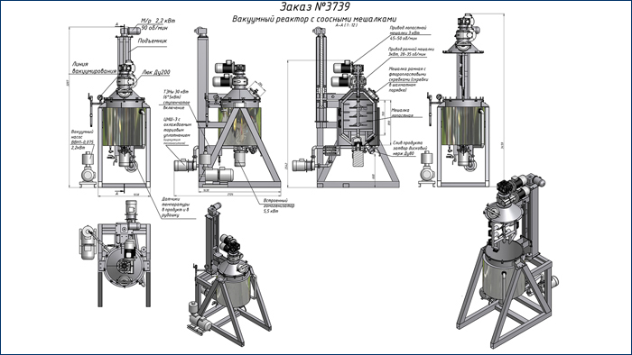 Вакуумный котел состоит из следующих основных частей: рама, привод, корпус, мешалка, опорные узлы вала мешалки, загрузочная горловина, расширитель-ловушка, разгрузочная горловина с механизмом управления. ..... подробнее