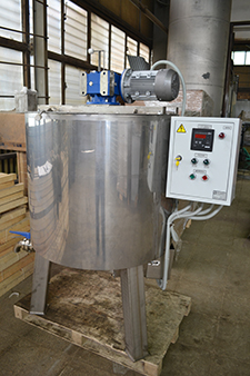 Перемешивающее устройство рамного типа с фторопластовыми скребками и мотор – редуктором, число оборотов мешалки 28-30об/мин. Для нагрева теплоносителя в нижней части емкости установлена ТЭНная коробка.