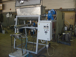 | Смеситель ленточный с шнековой выгрузкой | Смеситель двухроторный лопастной |