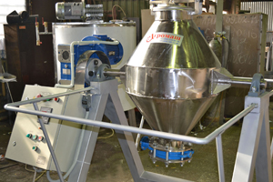Двухконусный смеситель периодического действия предназначен для перемешивания сухих компонентов. смесители двухконусные предназначены для тщательного смешивания с сохранением структуры сыпучих продуктов при относительно небольшом расходе энергии и малом времени смешивания. |